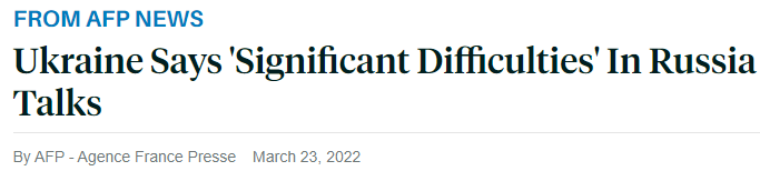 FX168财经报社(北美)讯 周三(3月23日),乌克兰方面表示,为结束将近一个月的战斗而与俄罗斯举行的谈判遇到了“重大困难”。
