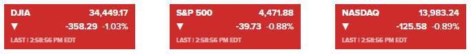 道琼斯指数下跌约370点,跌幅1.1%。标准普尔500指数下跌1%。纳斯达克综合指数下跌1.1%。