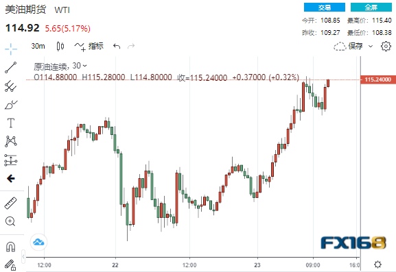 (美国WTI原油30分钟走势图,来源:FX168)